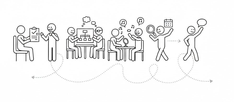 Imagina estos pasos como un mapa, no como una vía de tren. Aunque sabemos hacia dónde vamos, la ruta exacta la marcamos juntos. Dependiendo de cada caso, nos detendremos más en un punto o avanzaremos más rápido en otro, asegurándonos siempre de que el progreso sea firme y respetuoso con tus tiempos.